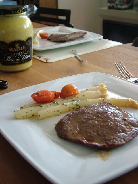 A borjúkarajt (1) mindkét oldalán 6 percig süssük.