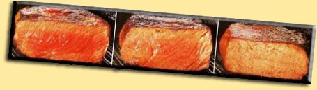 A hússzeleteket különböző ideig süthetjük. Ilyen lesz egy 200g-ossteak, ha pirítás után mindkét oldalát csak 1-1 percig sütjük (bal kép) Az ilyen húsra mondják, hogy angolosan sült. A profi franciául „saignant”-nak, angolul „rare”-nek nevezzük.