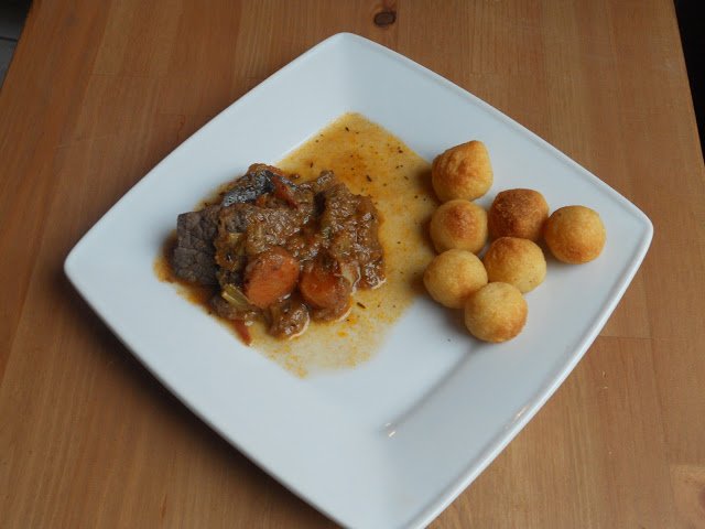 A marhahúst megmossuk, szárazra töröljük. Egy éles késsel kockázzuk fel és egy tálba téve öntsünk rá kb 2 deci vörösbort, majd szórjuk meg a provence-i fűszerkeverékkel, és adjuk hozzá a babérlevelet és a megtisztított és vastagabb karikákra vágott sárgarépát és a póréhagyma zöld részét (szintén felkarikázva). A tálat lefedve egy éjszakára tegyük a hűtőbe.