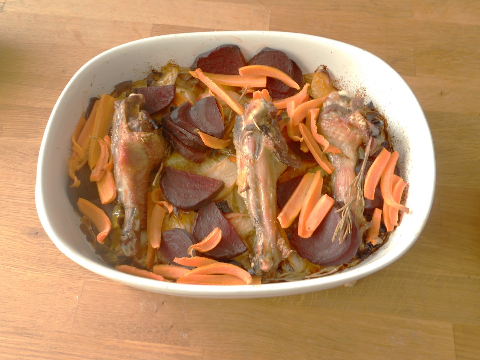 - 200 fokra előmelegített sütőben kb fél órát sütjük, majd hozzáadjuk a csíkokra vágott sárgarépát, és további negyedóra-húsz percet sütjük.