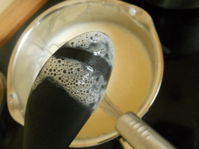 Akkor jó, ha a keverőkanál hátulján lévő pudingon ha húzunk egy csíkot úgy marad, és nem folyik össze.
