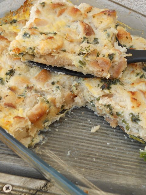 A póréhagymát felaprítjuk és pár kanál (4-5) olívaolajon üvegesre pároljuk, majd a kockákra tesszük. A tojást és a tejet elkeverjük, és szintén megy a zsemlekockákra. A petrezselymet felaprítjuk és azt is hozzáadjuk. Az egészet állni hagyjuk, majd belekeverjük a lisztet.