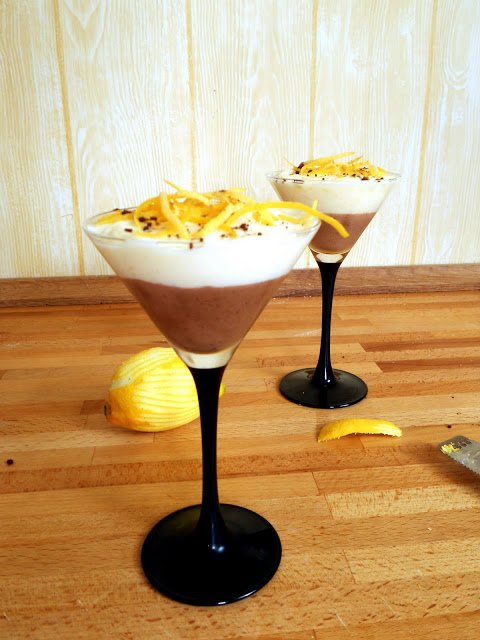Az így elkészült habokat osszuk szét hat pohárba: egy koktélos (vagy bármilyen kínáló) pohárba kanalazunk először a csokoládés masszából, majd óvatosan a citromos rétegből is. Érdemes a pohár talpát óvatosan oda-oda ütögetni, hogy a massza megfelelően összetömörödjön, és ne maradjon lyukacsos. Mielőtt a citromos réteg rákerülne, nézzük meg, hogy a pohár fala nem lett-e csokoládés, ha igen, papírtörlővel töröljük le, majd jöhet rá a citromos mousse is.