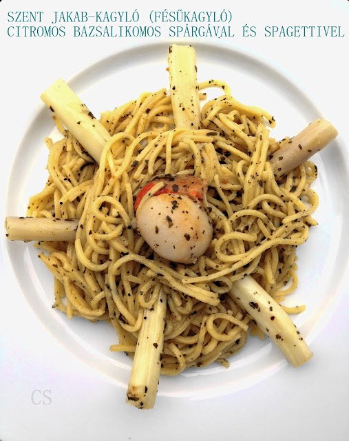 A Szent Jakab-kagyló, vagy másik ismert nevén fésűkagyló a franciák egyik nagyon kedvelt tengeri étele. Készítik mártásokkal, feltűzik BBQhoz pálcikákra, kínálják saját “házában”. Nálam most naturabb módon készült citrommal, spárgával és friss spagettivel.