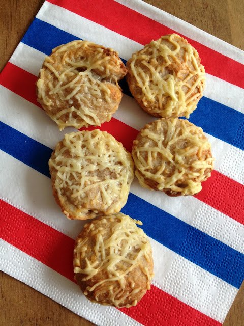 Nyújtsuk ki a tésztát, kenjük meg egy felvert tojással, és szórjuk meg reszelt sajttal. Tegyük szilikon sütőlapra (vagy sütőpapírral bélelt tepsire) úgy, hogy hagyjunk köztük helyet, mert a sütőportól „megnőnek”.