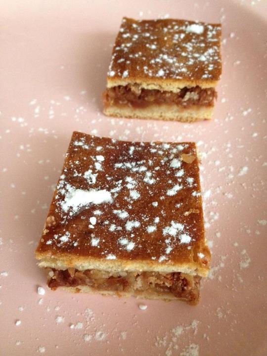 Szórjuk meg darált mandulával és kanalazzuk rá az almás tölteléket.