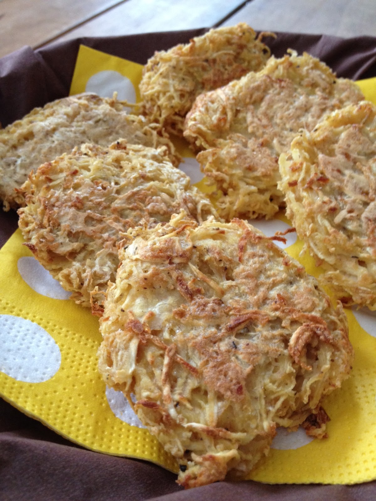 Keverjük össze, és formázzunk kb 10 darab korongot belőle. A forró serpenyőbe tegyük egymás mellé a korongokat (zsiradékra nincs szükség!) és süssük addig, míg mindkét oldaluk szép világosbarna színt nem kap!