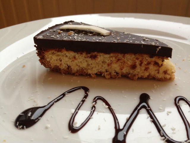 Hűvös helyen hagyjuk kb fél órát hűlni, majd tegyük hűtőbe minimum egy-másfél órára. Tálalás előtt kb fél órával vegyük elő, majd kókuszreszelékkel és kókuszdarabokkal megszórva cikkelyekre vágva tálaljuk.