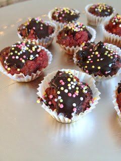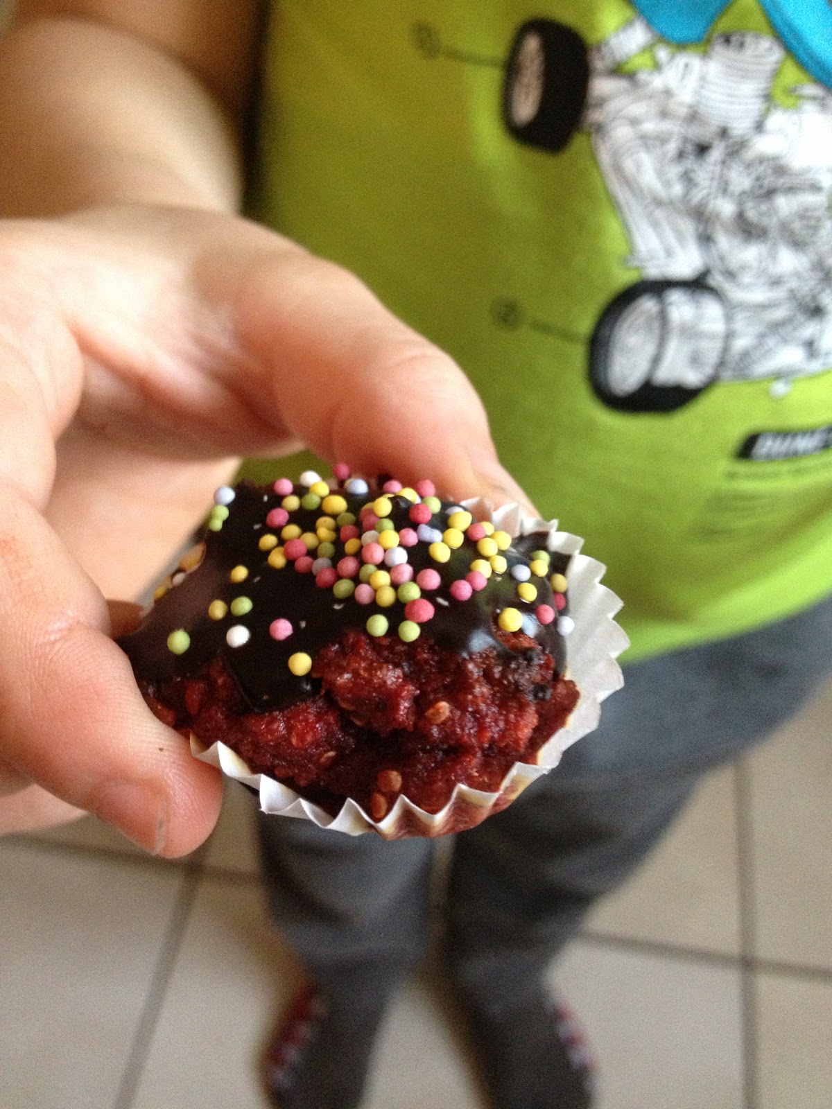 A tojások sárgáját keverjük habosra 3 evőkanálnyi xylitollal, majd adjuk hozzá a gojival együtt pürésített céklát, és alaposan keverjük el. Szórjuk hozzá a sütőporral elkevert darált mogyorót, a darált mandulát és a fűszereket is, majd keverjük át, és adjuk hozzá a maradék xylitollal kemény habbá vert tojásfehérjét. Forgassuk össze, majd tegyünk egy-egy púpos teáskanálnyi masszát a kapszlival bélelt mini muffinsütő mélyedéseibe.