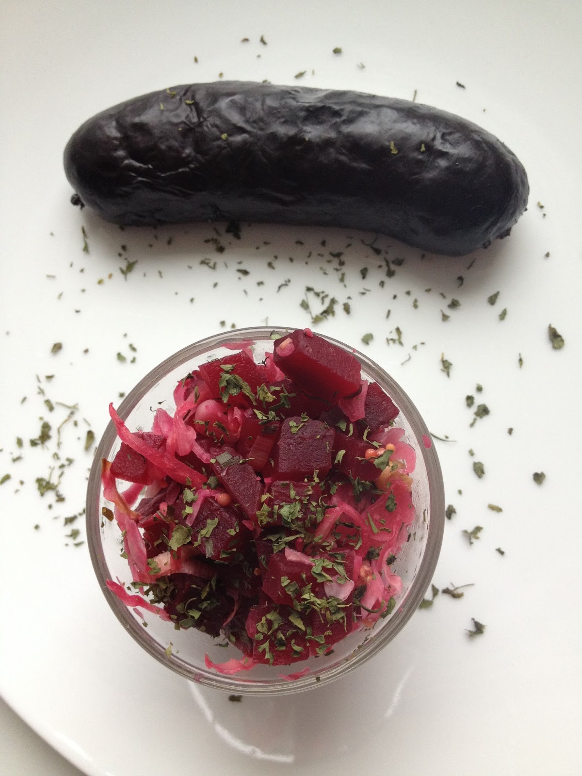 Budin noir meleg MINDENMENTES céklás-káposztasalátával
