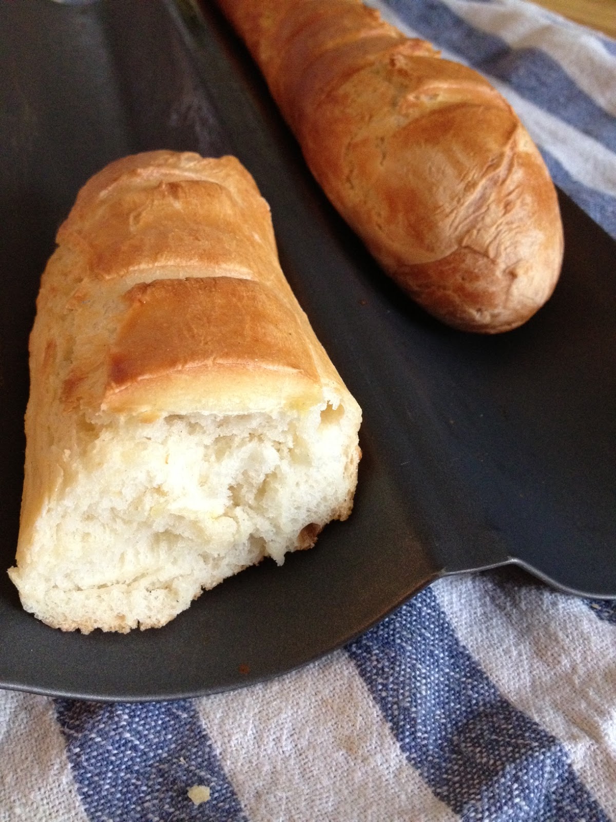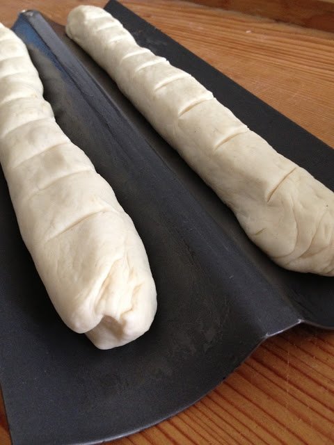 Formázzunk mindkettőből baguette rudakat, majd tegyük olívaolajjal kikent baguette sütőformába (vagy sütőpapírral bélelt tepsibe). Takarjuk le ismét nedves ruhával, és hagyjuk hogy duplájára keljen.
