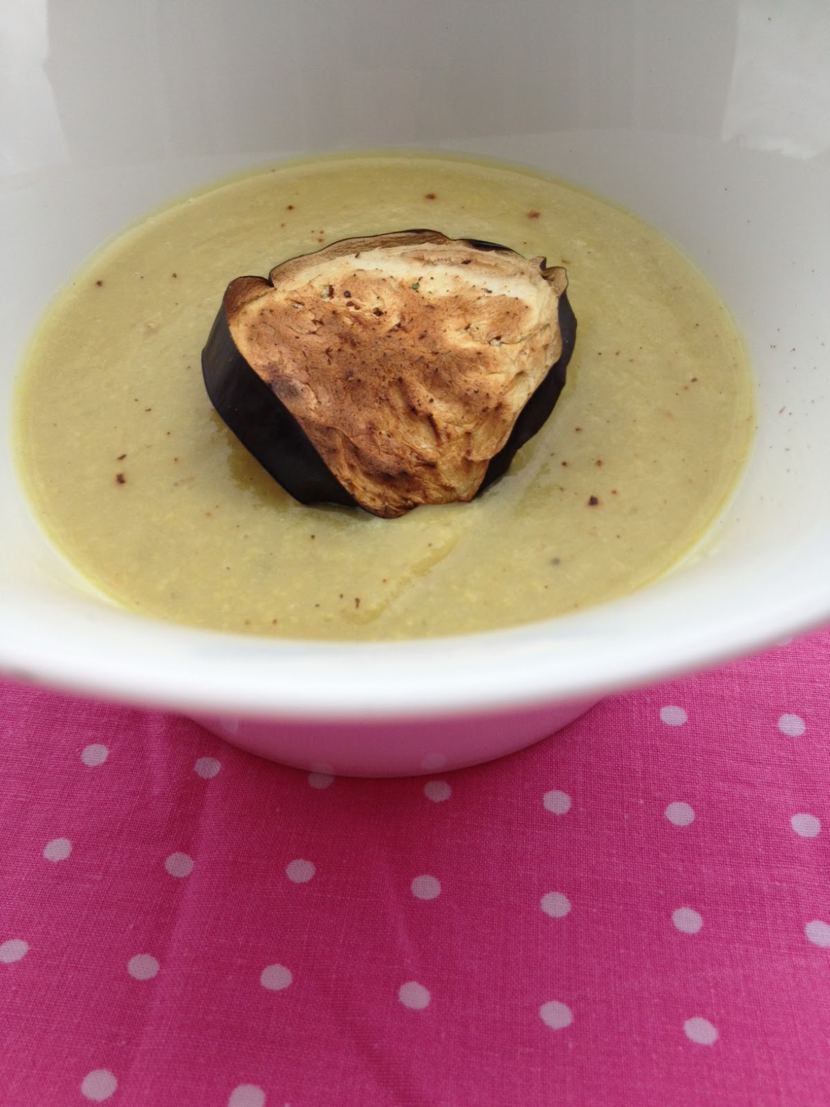 MOZZARELLÁS PADLIZSÁNKRÉMLEVES – VELOUTÉ D’AUBERGINE ET MOZZARELLA (liszt-, glutén-, tojás-, hús-, hozzáadott cukormentes)