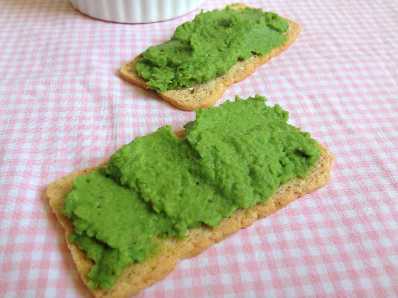 A zöldborsót lobogó sós vízben (vagy a mikróba rakva pár perc alatt) főzzük meg. Pürésítsük a gerezd fokhagymával együtt. Adjuk hozzá a lime levét és a szőlőmagolajat, majd ízesítsük sóval, borssal és egy minimális cayenne borssal. Keverjük össze, és már kenhetjük is!