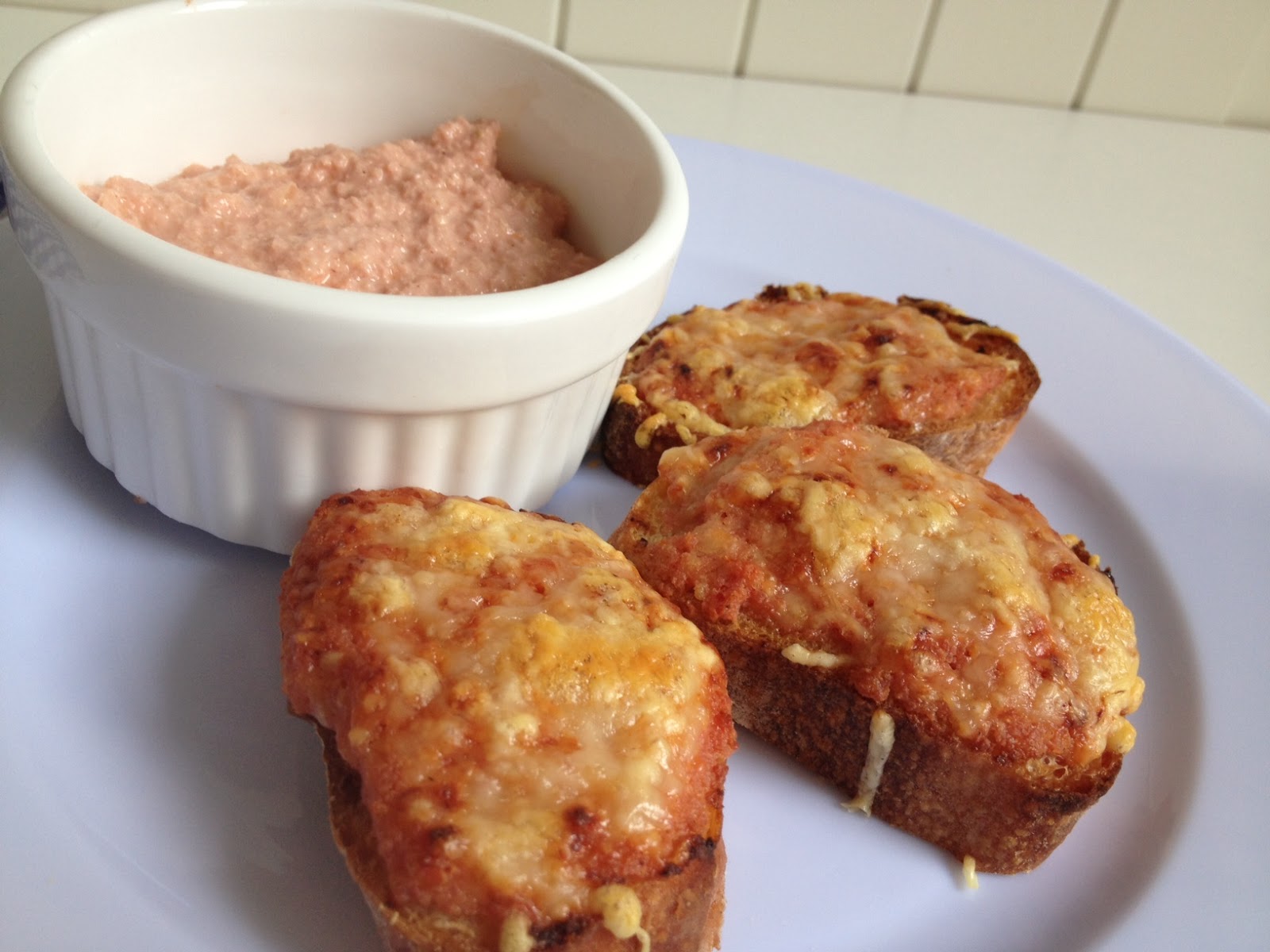 A krémet kenjük a kenyér vagy baguette szeletekre, majd a tetejét szórjuk meg reszelt sajttal. Néhány perc alatt készre sütjük. (amíg a teteje színt kap). Langyosan fogyasztjuk.
