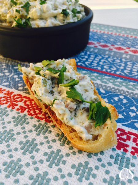 A heringet, a petrezselymet, a kapribogyót egy éles késsel aprítsuk fel apróra (vagy daráljuk le). Keverjük a felvert tejszínhez- kb 2 evőkanálnyi petrezselymet hagyjunk ki a díszítéshez -, majd ízesítsük sóval, borssal és őrölt szerecsendióval. A sóval óvatosan bánjunk, mert a füstölt hering magában is sós!