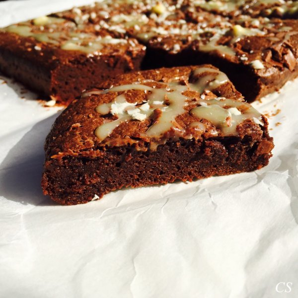 Villámgyorsan kellett valamilyen édesség, és brownie már régen volt. Van a blogon többféle recept is, most egy rizslisztből készülő triplacsokoládés recepttel gazdagodott a repertoár. Triplacsokis, mert nem csak a tésztájában van olvasztott csokoládé, hanem érdemes bele is szórni, és miután megsült a tetejére is csurgassunk egy keveset.