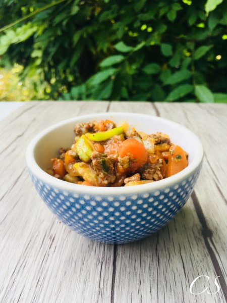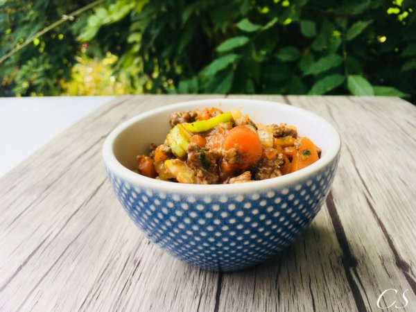 Szeretem a gyorsan, egyszerűen elkészíthető fogásokat. Így most is egy kevés hozzávalós, gyors fogás készült ebédre: darált hússal és némi zöldség hozzáadásával mindenmentesen, vagyis glutén-, liszt-, tej-, szója-, tojás hozzáadása nélkül negyed óra alatt, amely a low carb és a low fat (zsírszegény) diétákba is könnyen beilleszthető.
