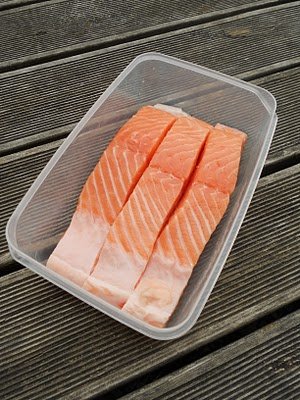 A legfelső párolótálat (a lazaccal együtt) a hűtőbe teszem.