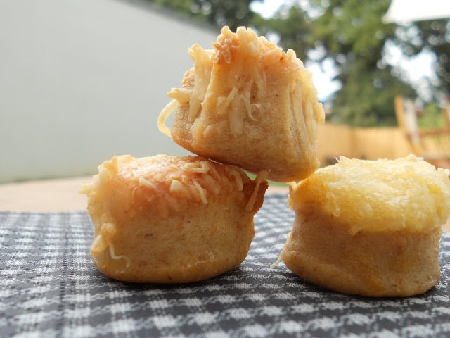 Ezt háromszor megismétlem, a hajtogatások között hűtőben, 15-20 percig pihentetem. Végül ujjnyi vastagságúra nyújtom, megkenem a tetejét felvert tojással és megszórom reszeélt sajttal (vagy magokkal), és pogácsaszaggatóval kiszúrom. Én a szinte legkisebbel csináltam, így finom kis falatkák lettek. Forró sütőben 10-15 perc alatt (igény szerint) megsütöm.