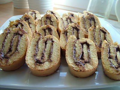 A kihűlt piskótát a konyaruhából kitekerem, a belsejét megkenem lekvárral, pudinggal vagy nutellával és föltekerem és tálra tesszük.. Kb ujjnyi vastag szeletekr vágom, és tálra rakom. Ízlés szerint megszórhatjuk leheletnyi vékonyan porcukorral is.
