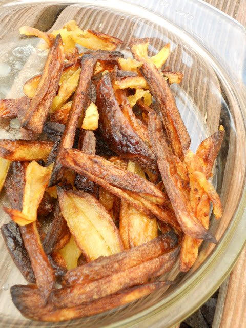 Egy edénybe tesszük a burgonyacsíkokat, majd hideg vizet folyatunk rá, és felforraljuk. Ha már lobog, teszünk hozzá egy teáskanál sót, és a forrástól számítva 3 percig főzzük .